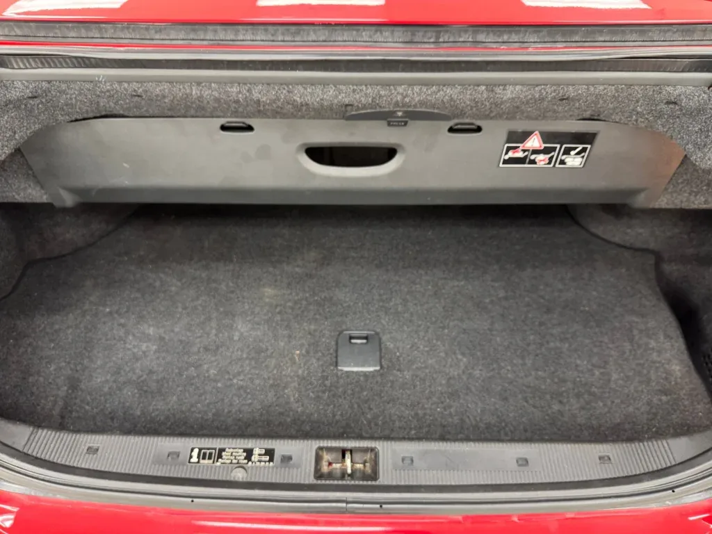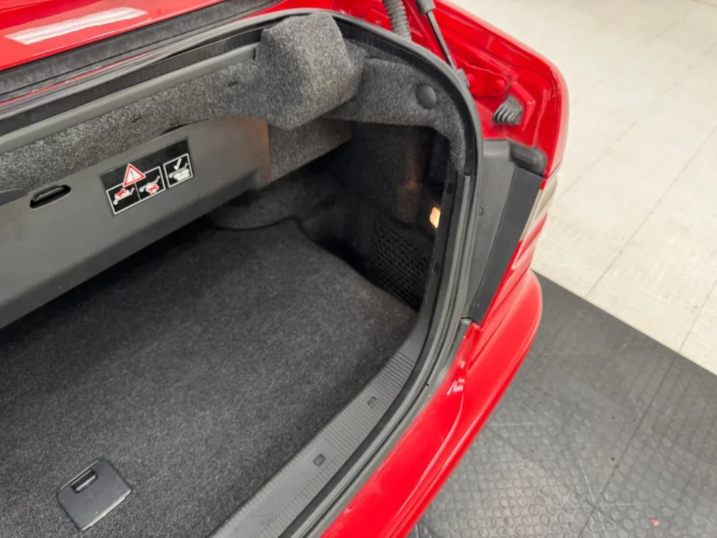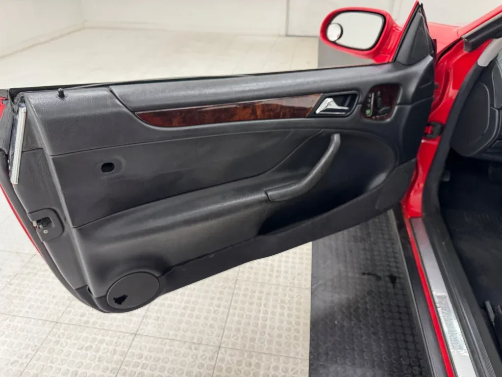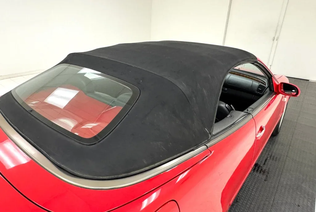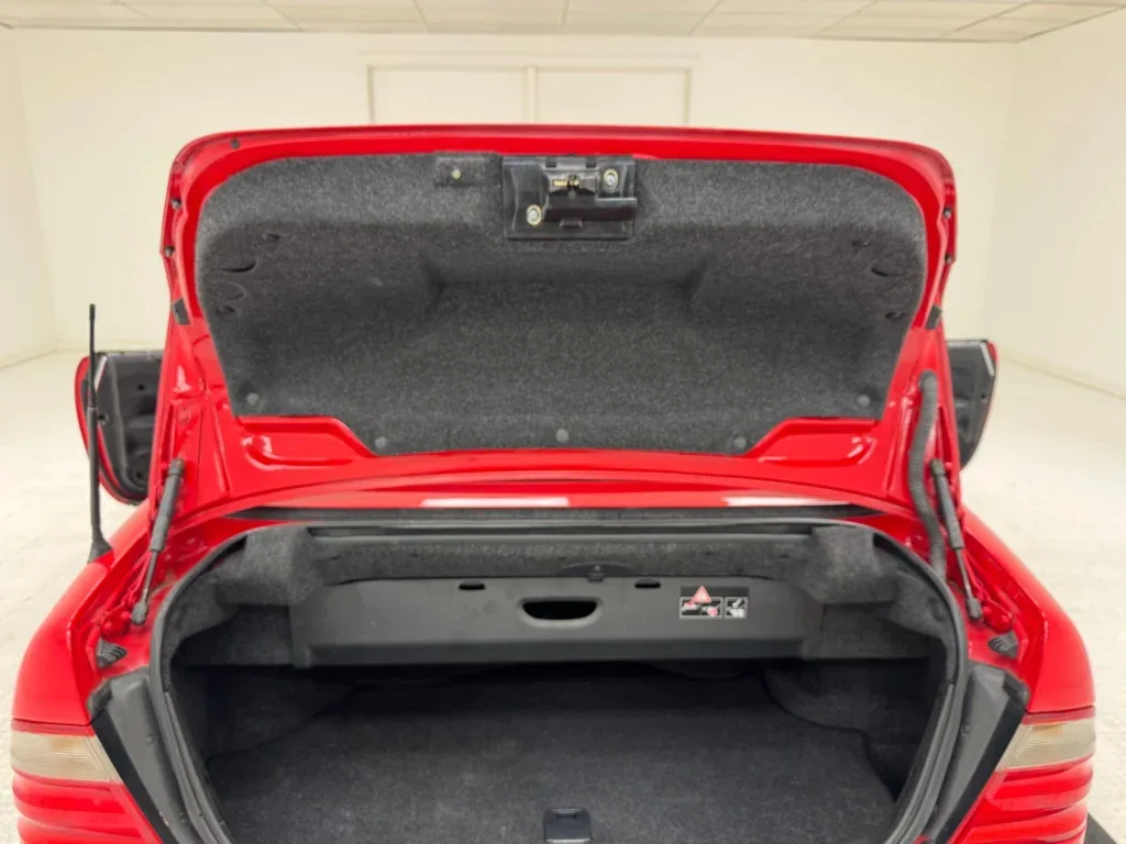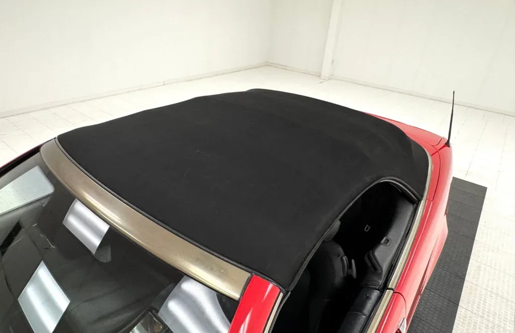 czarne tworzywo sztuczne i skóra tworzą dobrze zaprojektowane panele drzwi, z charakterystycznymi elementami sterowania fotelami, wspartymi imitacją drewna bukowego. Strona kierowcy nosi ślady użytkowania – pęknięty głośnik, brak zaślepki portu dostępu i odpięta wykładzina. Solidne fotele kubełkowe obszyte są czarną skórą i, pomijając kilka zadrapań na fotelach kierowcy, wyglądają na w doskonałym stanie z przodu i z tyłu w układzie 2+2. Gruba kierownica prowadzi do prostego i wydajnego zestawu wskaźników, analogowego według dzisiejszych standardów, ale z nutą nowoczesności w małym, cyfrowym ekranie. Czarne przełączniki i panel klimatyzacji również znajdują się na panelu przednim z drewna bukowego nad radiem AM/FM, co przenosi nas do roku 1999. Więcej drewna otacza dźwignię zmiany biegów i przełączniki w centralnej części. Konsola i niski, czarny dywan wypełniają przestrzeń na nogi. Podsufitka z miękkiego dachu jest w dobrym stanie, a bagażnik w całości wykończony jest szarymi dywanikami materiałowymi.