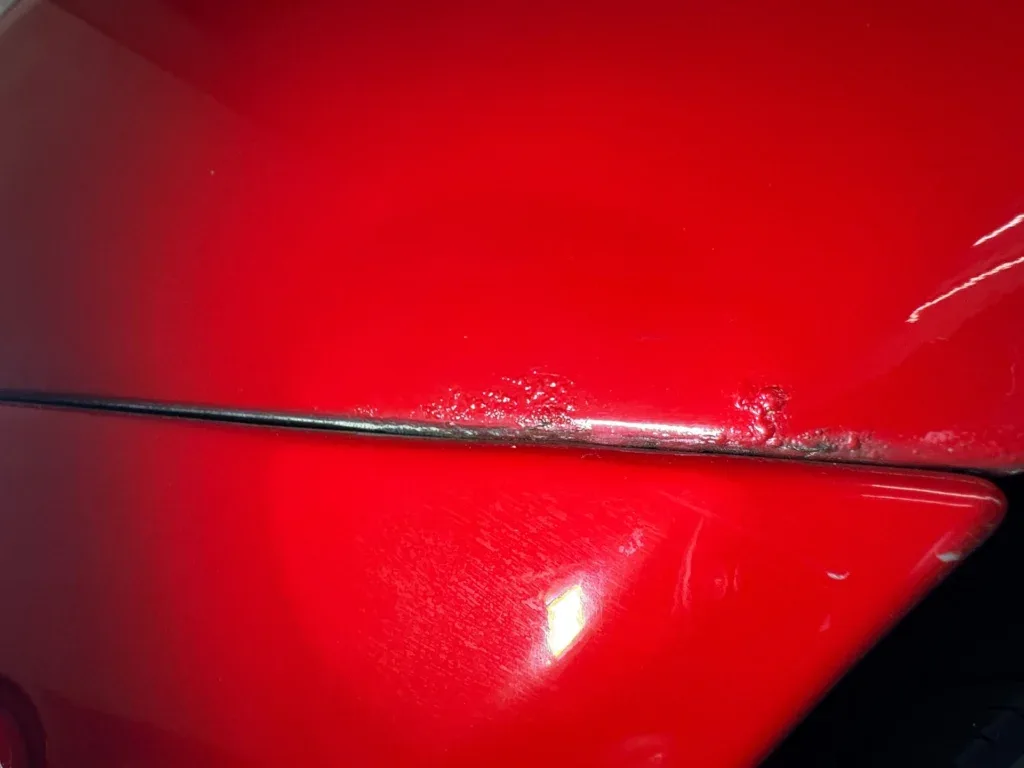 Większość, którą widzieliśmy, miała odcień srebra, więc ten Magma Red stanowi mile widzianą zmianę, ponieważ jest monochromatyczny i rozłożony na całym samochodzie, a jedynie atrapa chłodnicy, klosze reflektorów i emblematy odbiegają od koloru. Nawet listwy boczne przyjmują czerwony kolor, dyskretnie chroniąc boki i nadając subtelny akcent stylistyczny. Na górze, czarny płócienny dach skrywa szklaną tylną szybę, a tylne światła są spójne z falistym designem Benza, który podobno utrzymuje klosze widoczności, odprowadzając brud i śnieg. Cztery światła z przodu tworzą świetny projekt, tutaj z lekkimi przebarwieniami. Klosze te wyznaczają linie nadwozia powyżej, a jednocześnie flankują klasyczną atrapę chłodnicy i trójramienną gwiazdę Mercedesa. Twarda osłona bagażnika Składany dach i 16-calowe koła posiadają opony serii 55. Niedociągnięcia obejmują przebarwienia odpływu pod trzecim światłem stopu, poprawione odpryski i zarysowania, różne otarcia, pęknięcia na zderzaku, pęcherze na krawędziach paneli, rozwarstwienia na kołach i otarcia podbródka.