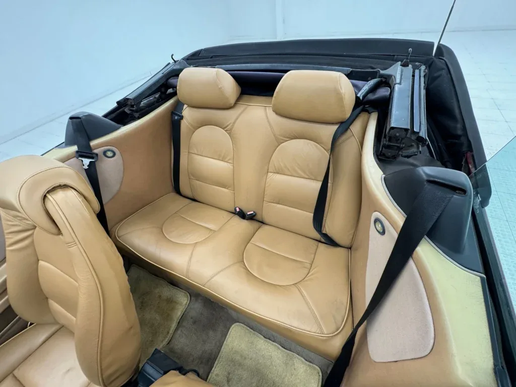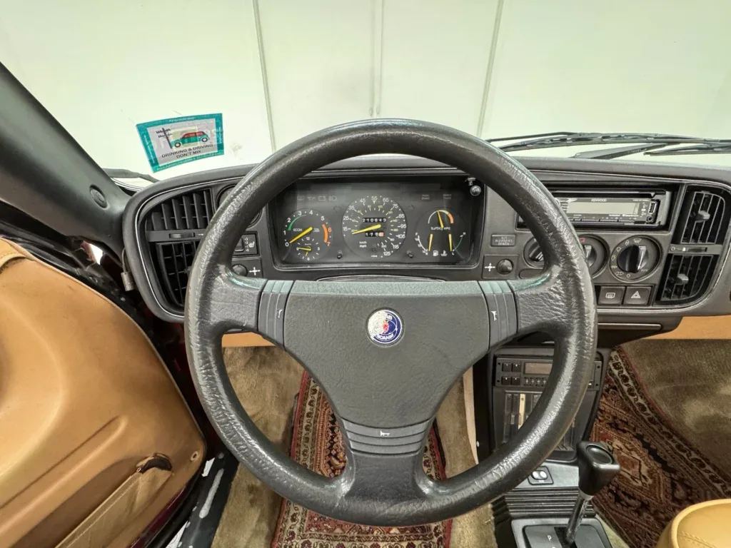 Elegancko wykończone wnętrze wykończono skórą siodłową, zaczynając od paneli drzwiowych z brązowymi, materiałowymi wstawkami. Oba drzwi mają lekką patynę, ale są w pełni sprawne, z zauważalnym brakiem okuć i przełączników. Skórzane fotele kubełkowe z przodu i dwuosobowa kanapa z tyłu są w wyjątkowo dobrym stanie, podobnie jak gumowana kierownica, na której widnieje wyblakły emblemat Saaba. Prowadzi to do Słynny, wydajny i prosty zestaw wskaźników, który obejmuje wskaźnik doładowania dla turbosprężarki i czarne plastikowe przełączniki, w tym konsolę centralną z pokrętłami klimatyzacji i innymi funkcjonalnymi przyciskami. Radioodtwarzacz Kenwood AM/FM/CD z AUX i USB znajduje się teraz wysoko w konsoli, a elektroniczny korektor dźwięku i uchwyt na kasety znajdują się niżej. Podczas przeglądu tej części samochodu zauważyliśmy pęknięcia na desce rozdzielczej. Prosta automatyczna dźwignia zmiany biegów znajduje się w konsoli środkowej, tuż przed gniazdem zapłonu, a podłoga poniżej wyłożona jest jasnobrązową wykładziną. Nasz bagażnik wyłożony jest szarymi panelami materiałowymi i mieści koło zapasowe.